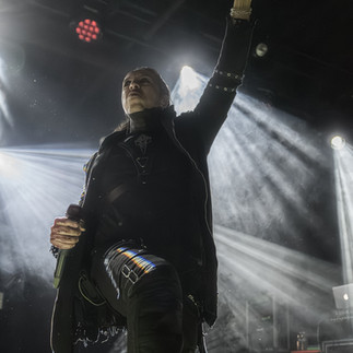 Our headliner tonight across the pond from Italy was Lacuna Coil on their Sleepless Empire Tour celebrating the release of their last album of the same name back in February 2025. This is a band I have been listening to since high school, so 25 years now. To say the least I was excited to see them live for the first time. Yes, in 25 years I had never seen them live and there has been ample opportunity. When Cristina Scabbia takes to the mic protect your crystal, She reaches this high notes in such a beautiful manner that a recording cant even mimic it. Paired with Andrea Ferro’s lower vocals its becomes goth metal match that's hard to find. Unfortunately, it wasn't a full band on stage. Through the tour the bassist has injured his leg. Although, he may not be out front in his make up with the others, he was still over by the monitor console tearing it up base with a stool to keep the weight off his leg. Something, I have come to watch for is an animated drummer. Richard Meiz is certainly animated in the back demonstrating the he is just as much a performer as he is a drummer. Interacting with the crowd as much as the vocalists. Making eye contact, smiling and making other faces letting there fans no they see them.